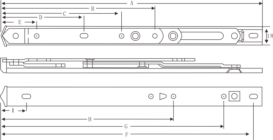 | 連桿數量 | 折片厚度(mm) | 規格\值 | A | B | C | D | E | F | G | H | I | 窗最高(mm) | 窗最寬(mm) | 窗最重(kg) | 開啟角度(±2°) |