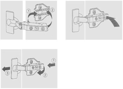 ※當門上有多個鉸鏈時,將所有鉸鏈按圖示方向卡入鉸鏈底座。